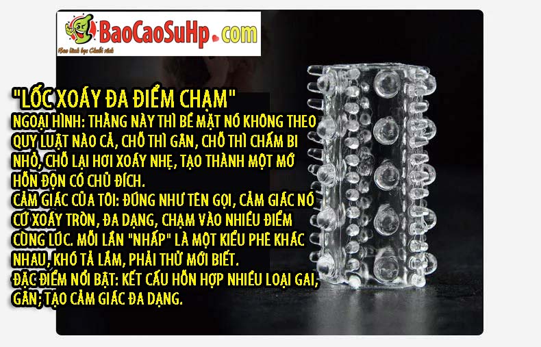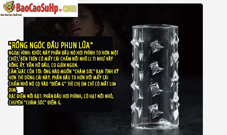 Thiết kế phần đầu hơi phình, phủ các hạt nhỏ li ti như vảy rồng, tập trung kích thích điểm G. Cảm giác ôm sát và mượt mà giúp chăm sóc “điểm vàng” một cách tinh tế và đầy cảm xúc, khiến đối tác phải mê mẩn, tận hưởng sự khoái cảm tột đỉnh.