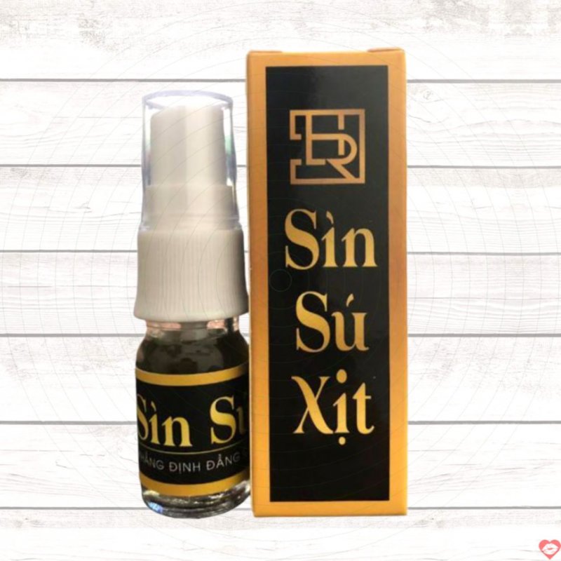 Sìn Sú dạng xịt là nước xịt nguyên chất được chiết xuất từ Sìn Sú Đen cùng các thảo dược thiên nhiên quý hiếm. Với dung tích 6ml, sản phẩm có thể sử dụng từ 25 đến 30 lần, giúp kéo dài thời gian quan hệ lâu hơn từ 30 đến 60 phút, cải thiện hiệu quả chứng xuất tinh sớm, mang lại sự tự tin và thăng hoa trọn vẹn cho phái mạnh. Sản phẩm 100% từ thành phần thảo dược tự nhiên, đảm bảo không gây kích ứng hay tác dụng phụ khi sử dụng.